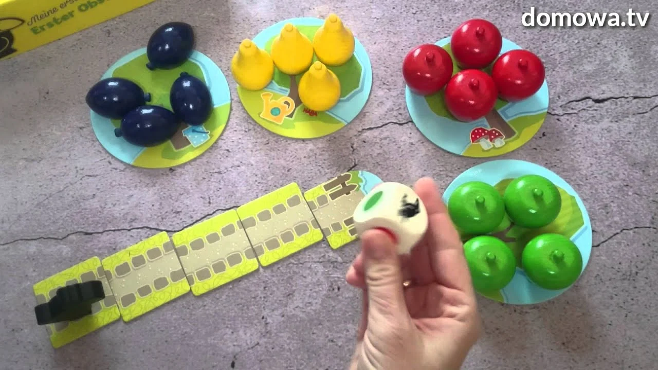 Gdy wypadnie zielony to zbieramy z drzewa zielone jabłko do wspólnego koszyka, gdy żółty to gruszkę itd. Za to gdy wypadnie symbol kruka to przesuwamy kruka w stronę naszego sadu, a gdy koszyk to możemy wybrać dowolny owoc do koszyka.