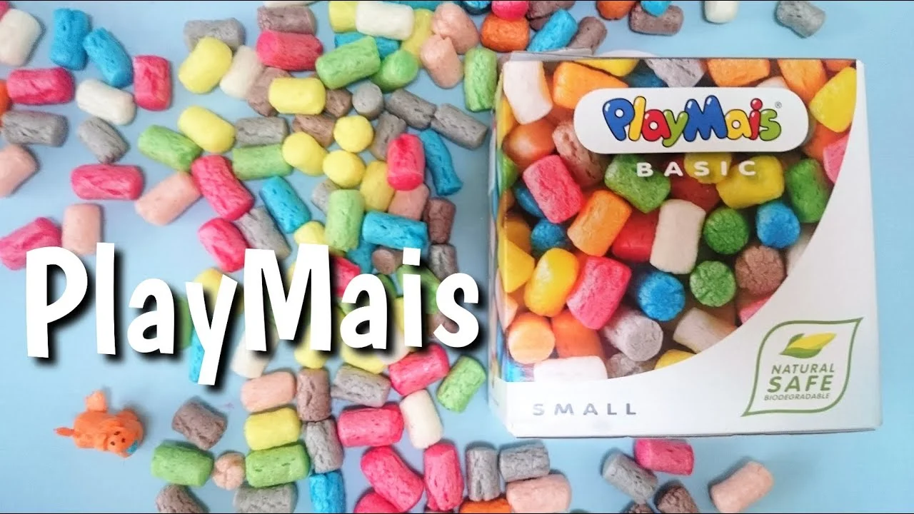 PlayMais zlepia się ze sobą za pomocą wody, są trochę inne niż zwykłe klocki, które nasadza się na siebie, bo tutaj je . Przypominają chrupki kukurydziana, a w zasadzie to są chrupki kukurydziane, tylko zabarwione na różne kolory, więc łatwiej wyczarowywać z nich różne kształty, przedmioty, obrazki. Zobaczcie, jak sprawdzają się w praktyce.